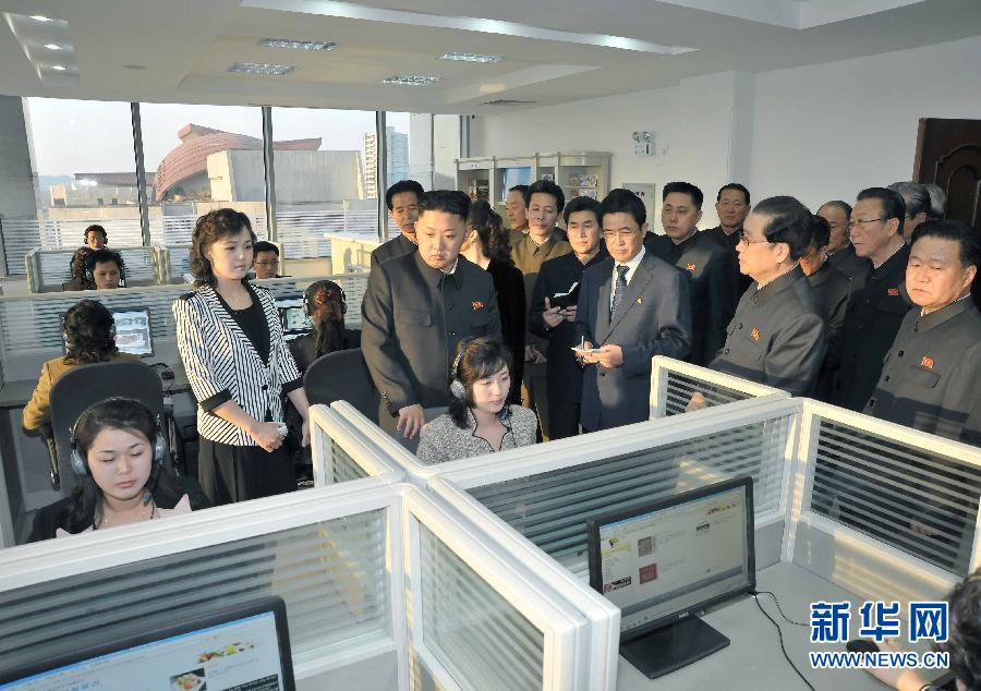朝中社4月29日提供的这张照片显示,在朝鲜首都平壤,朝鲜最高领导人金正恩(中)携妻子李雪主(中左)参观“海棠花”健康中心。据朝中社27日报道,朝鲜最高领导人金正恩携妻子李雪主参观了即将开业的“海棠花”健康中心。报道说,这座六层楼高的健康中心位于大同江畔,是一座集餐饮、服务业为一体的综合性现代化服务设施。图片来源:新华网