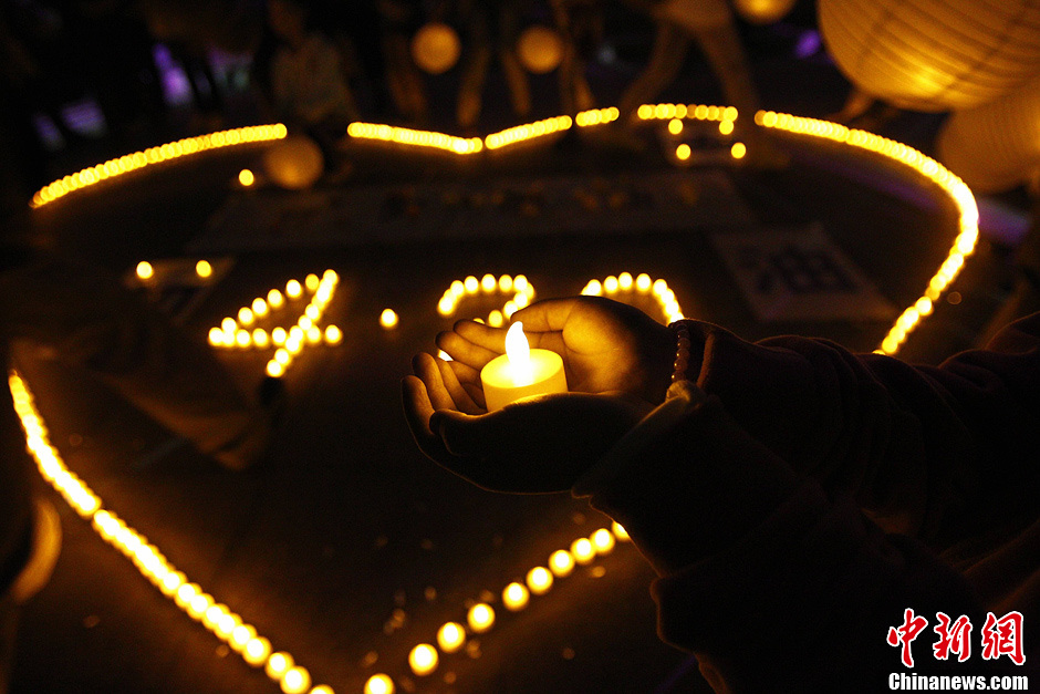 河南民众点亮烛光为雅安祈祷