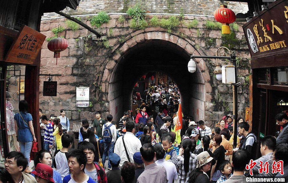 4月30日,是“五一”小长假第二日,记者走访发现,当天来湖南凤凰古城的游客数量比起前几日有了较大的增长,古城内游客摩肩接踵走在各大小街头。一位来自广东的游客表示,因为凤凰古城太美收不收门票还是会来凤凰,只是希望门票能回归理性,这样才能给商户和游客带来双赢。图为凤凰古城内游客如织。杨华峰 摄