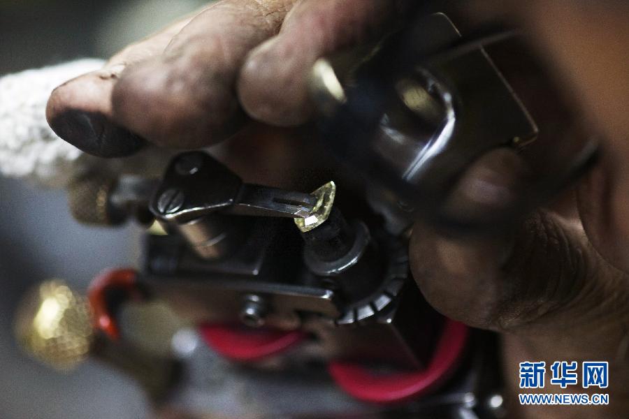 2012年10月30日,在以色列特拉维夫附近,一名工匠在打磨一粒黄钻石。以色列拥有世界上最繁忙的钻石交易中心之一,但这里的钻石打磨工和切割工逐渐被亚洲地区的廉价劳动力所取代,使得以色列的钻石制造业日渐萎缩。图片来源:新华网