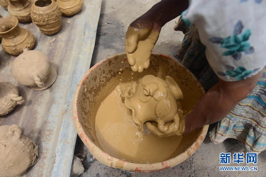 2013年3月15日,在危地马拉奇瑙特拉市的圣克鲁斯,一名当地妇女制作陶器。2013年1月,危地马拉文化部宣布奇瑙特拉的圣克鲁斯陶器手工艺为国家非物质文化遗产。图片来源:新华网