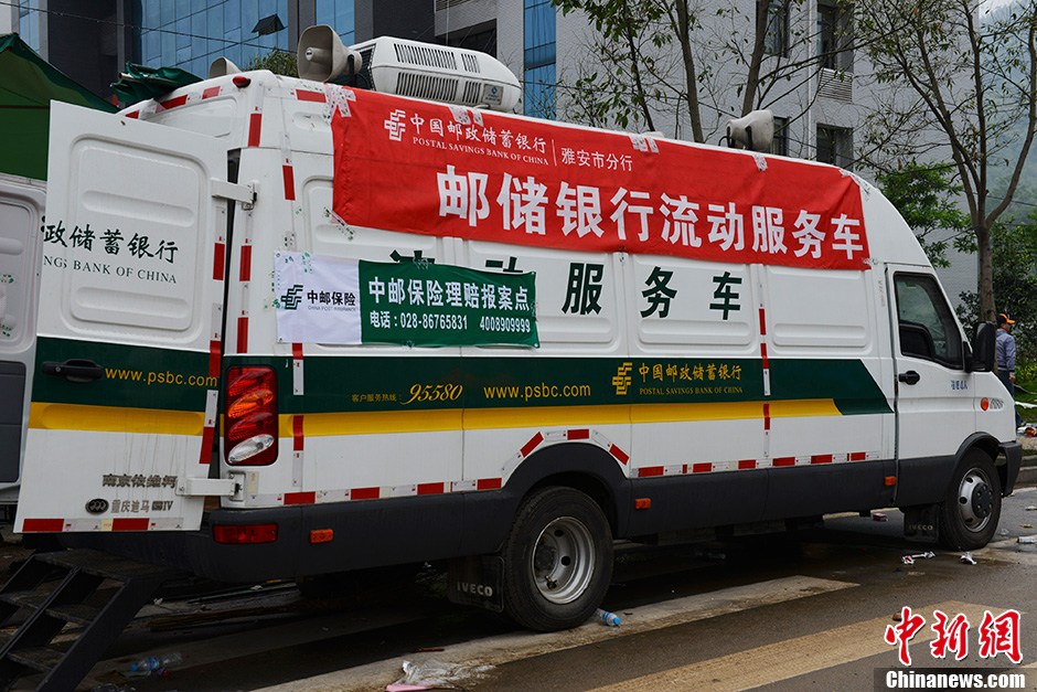 图为4月23日在四川省芦山县开展业务的流动银行。李克 摄