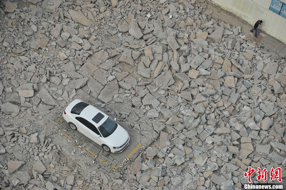 近日,在山西太原西太堡街道路改造扩建现场,一辆轿车停车地方被挖成“孤岛”,成为空地上的“钉子户”。据大厦保安介绍,“钉子车”停车处为某公司的停车场,4月底太原市对该路段进行拓宽改造,为了不影响工程进度,在联系车主无果的情况下,施工单位便绕过轿车在四周进行施工。如今已过去10余天,但车主依旧音信全无。图为5月6日,轿车停车地方被挖成“孤岛”。韦亮 摄