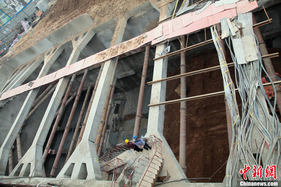 5月6日凌晨2时40分许,西安地铁三号线施工现场发生塌方事故,造成现场5名施工人员被困。陕西省公安消防总队向记者证实,目前已搜救出两名被困人员,但均已无生命体征。截止记者发稿时,现场救援仍在继续。图为西安地铁三号线部分施工场地。张远 摄