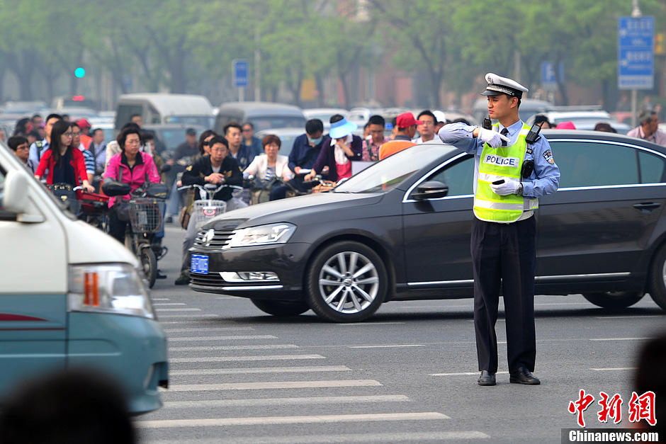北京行人“闯红灯”开罚首日 “最帅交警”上路疏导 (16/18)
