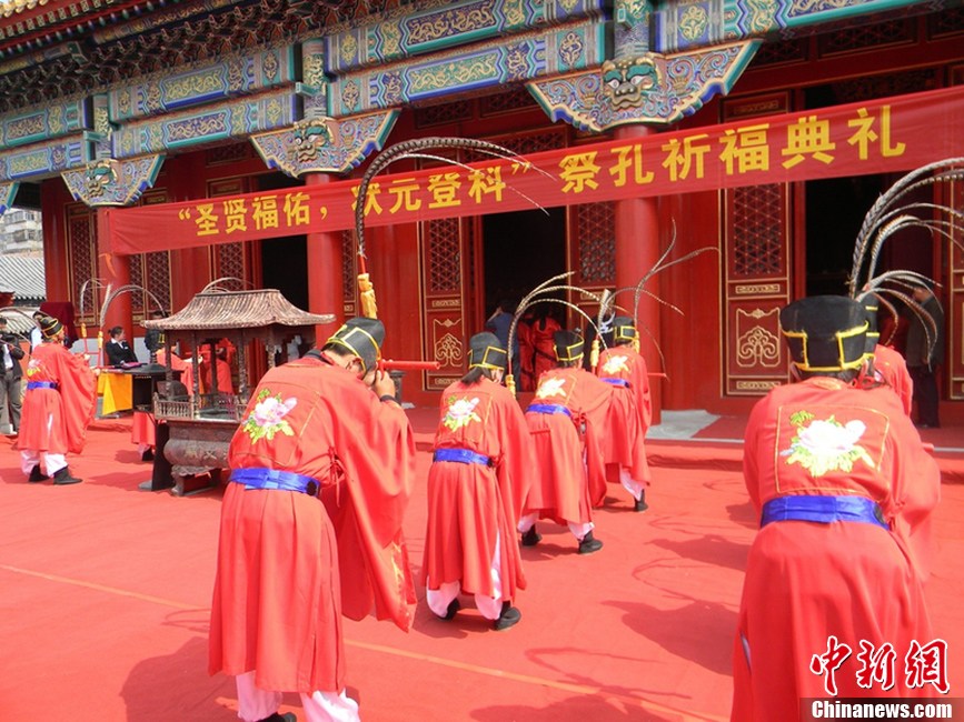 河北承德家长学子文庙祭孔 缓解高考压力 (1/3)