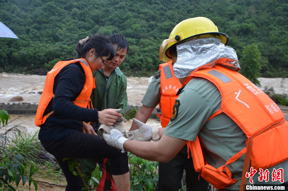 广西防城港突发山洪14人被困孤岛 现场紧急营救 (4/5)