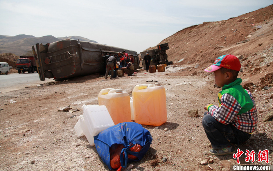 内蒙古乌兰察布油罐车侧翻 村民扎堆抢灌柴油 (4/4)