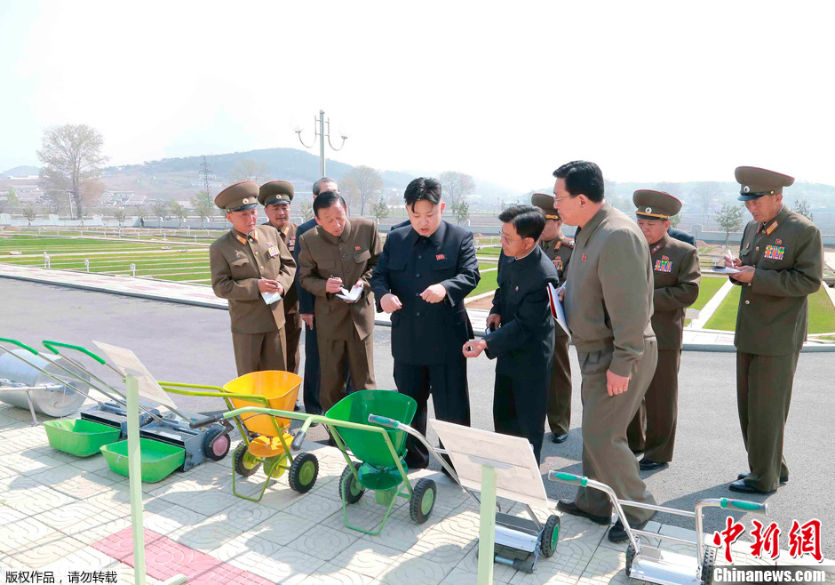 当地时间2013年5月6日,朝鲜平壤,朝鲜领导人金正恩视察了国家科学院生物工程学分院草皮研究所。