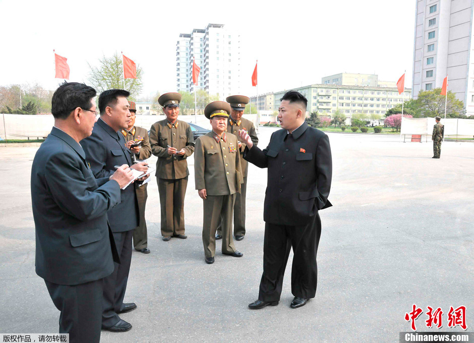 据朝中社2013年5月7日提供的照片显示,朝鲜最高领导人金正恩视察了朝鲜人民军承建的多个工程项目。