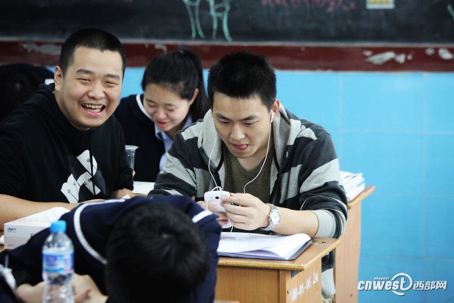 高三教室里,一位学生利用课间休息,拿出手机来听音乐进行放松。图片来源:西部网
