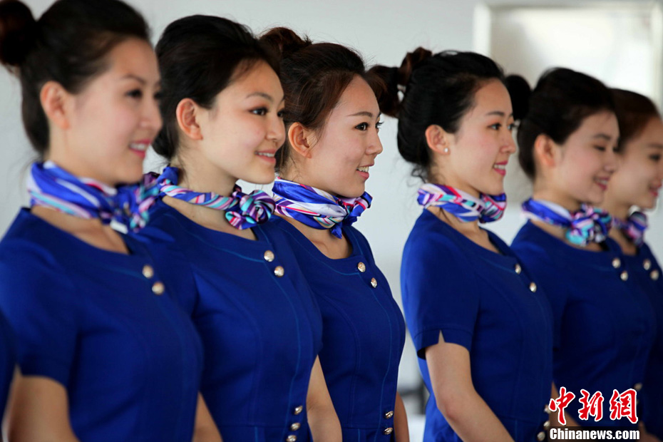 2013年5月9日,在位于沈阳市的辽宁现代服务职业技术学院,第十二届全运会沈阳赛区的礼仪志愿者们带妆接受封闭培训,这也是她们最后一次训练。5月10日,十二运首金将在竞走项目中决出。图片来源:Osports全体育图片社