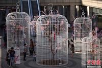 南京街头“巨型鸟笼”阵倡导绿色生活