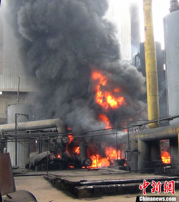 5月14日,四川自贡市一工厂煤气站发生火灾,当地消防部门调集6个中队13辆消防车70余官兵奋力扑救,大火被成功扑灭,未造成人员伤亡。初查火灾系工人使用电焊枪进行维修作业时引发。中新社发