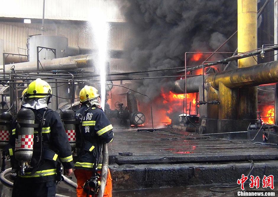 5月14日,四川自贡市一工厂煤气站发生火灾,当地消防部门调集6个中队13辆消防车70余官兵奋力扑救,大火被成功扑灭,未造成人员伤亡。初查火灾系工人使用电焊枪进行维修作业时引发。中新社发