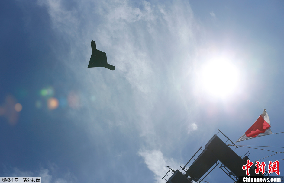 当地时间2013年5月14日,美国弗吉尼亚州,一架X-47B无人机从“布什”号航母上弹射起飞。这是美军首次完成了从航空母舰上弹射起飞无人机。