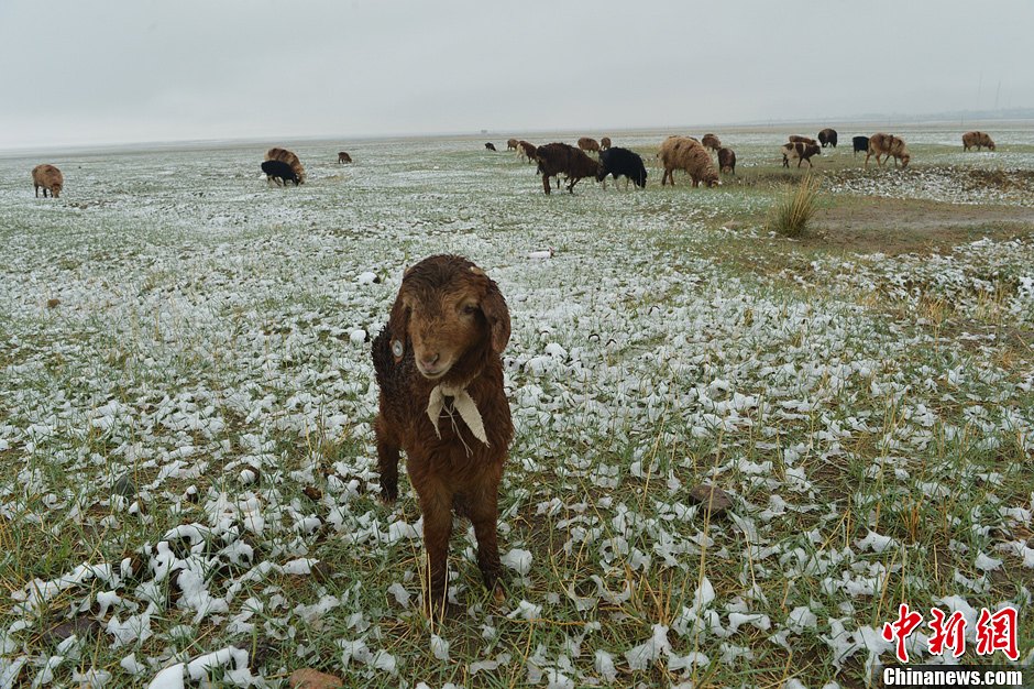 5月15日,新疆哈密地区巴里坤县迎来雨雪天气,让清晨出行的人们感受到一丝清凉,一夜之间刚刚返青的草原披上了银装,原野上呈现出一幅夏日里的冬日景观。中新社发 张建刚 摄 图片来源:CNSPHOTO