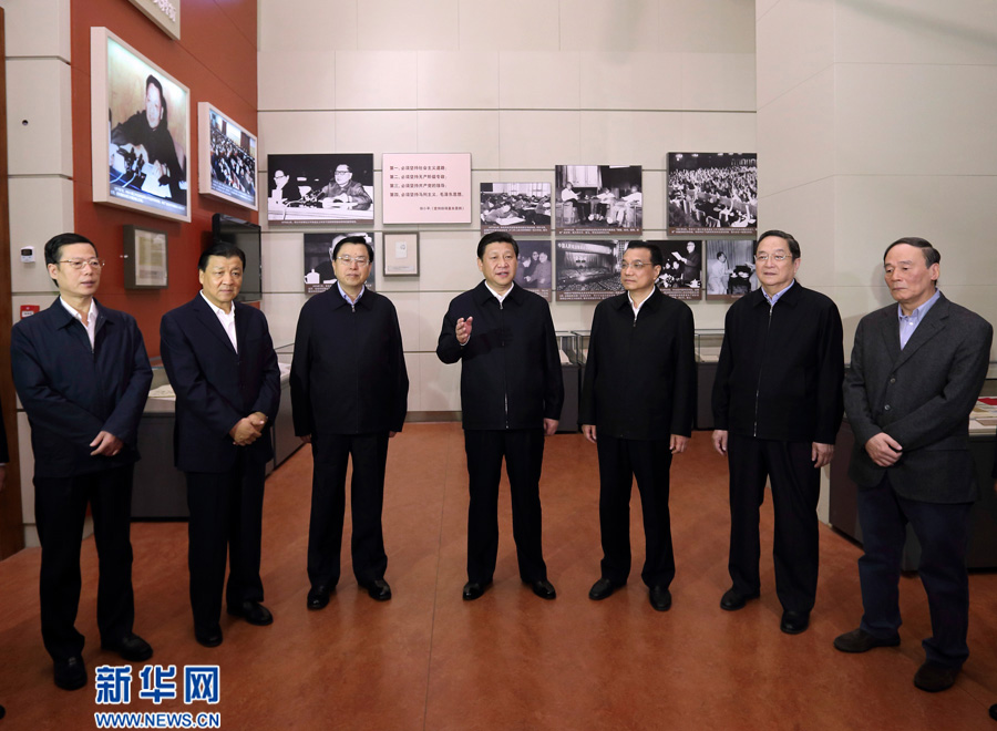 11月29日,中共中央总书记、中央军委主席习近平和中央政治局常委李克强、张德江、俞正声、刘云山、王岐山、张高丽等来到国家博物馆,参观《复兴之路》展览。新华社记者 兰红光 摄 图片来源:新华网