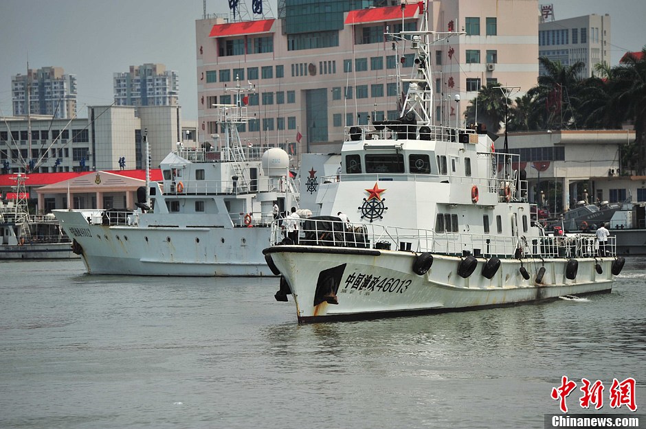 5月16日,中国南海绝大部分海域当日12时起正式进入一年一度、为期两个半月的伏季休渔期。休渔范围为在北纬12度以北至“闽粤海域交界线”的中华人民共和国管辖的南海海域(含北部湾),除单层刺网和钓具外,禁止其他作业类型生产。海南省海洋渔业监察总队中国渔政46012船和46013船于当日开始实施海上巡航和港口监管工作,同时,密切注意外国渔船活动情况,严厉打击外国渔船进入我休渔海域进行侵渔侵权活动。中新社发 骆云飞 摄