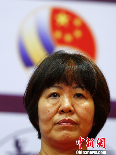 5月16日,中国女排主教练郎平率新任队长惠若琪,出席2013年中国国际女排精英赛新闻发布会。共有中国、古巴、波多黎各、泰国四支队伍参加此次比赛,赛事分两站进行,首站将于5月17-19日在浙江宁波北仑打响,22-24日将移师广东深圳。中国队首场将迎战波多黎各。中新社发 富田 摄