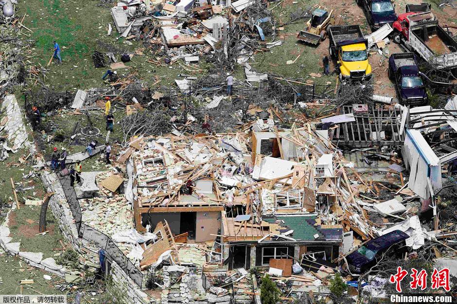 当地时间2013年5月16日,美国得克萨斯州格兰柏立,遭遇强力龙卷风袭击,截至目前已造成6人死亡,超过100人受伤。图为被龙卷风毁坏的房屋。