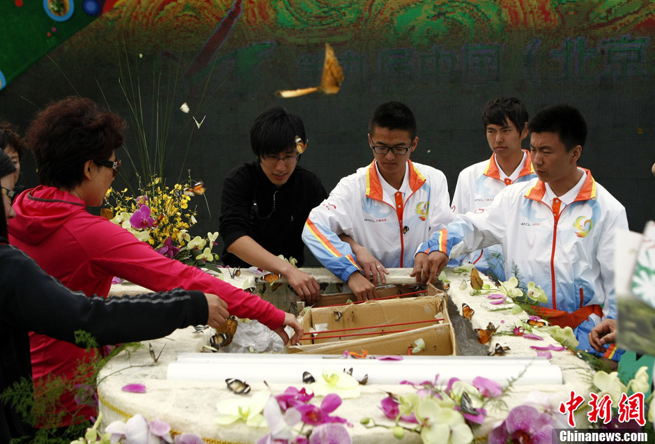 5月18日上午,第九届中国(北京)国际园林博览会举行开幕式,2000多只蝴蝶在开幕式上放飞,作为园博会启动的标志。中新社发 李慧思 摄