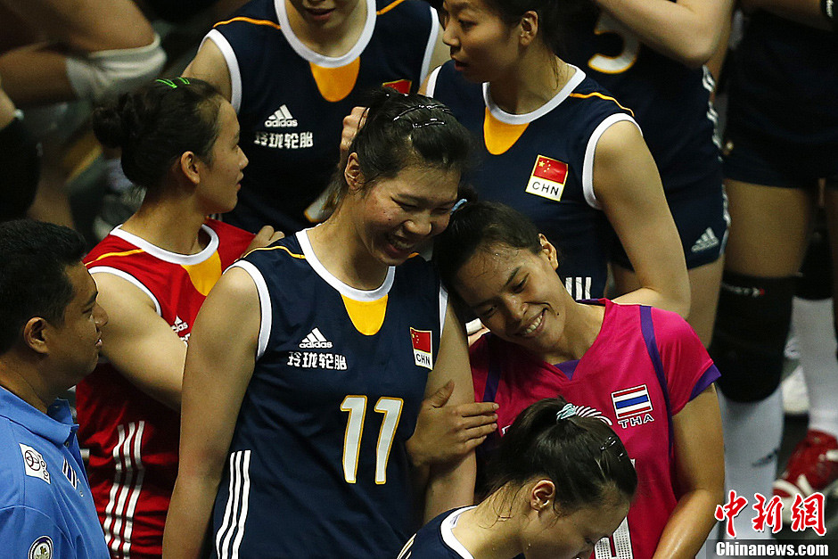 5月18日,郎平带领中国女排在2013中国国际女排精英赛宁波北仑站比赛中,以3比0的比分击败泰国,迎来第二场胜利。三局比分为25-15、25-13和25-9。中新社发 富田 摄