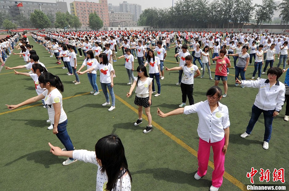 5月19日,是第23个“全国助残日”,国内50多个城市,20000余人一起参加“快闪手语舞”,并创造新的世界吉尼斯纪录。据了解,之前的手语舞,最高世界纪录由5796人参加表演,此次活动打破这一纪录。在石家庄河北师范大学汇华学院,来自河北多个高校和社会企业的志愿者参与活动,一起联手大合唱手语舞《爱》。中新社发 翟羽佳 摄