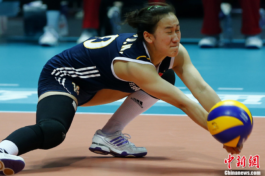 5月19日晚,经过三天激战,2013年中国国际女排精英赛宁波北仑站的争夺全部结束。中国女排在收官战中经过四局激战以3-1力克古巴,全胜战绩摘得郎平带队后的首个冠军,四局比分为25-19、21-25、25-16和25-18。中新社发 富田 摄