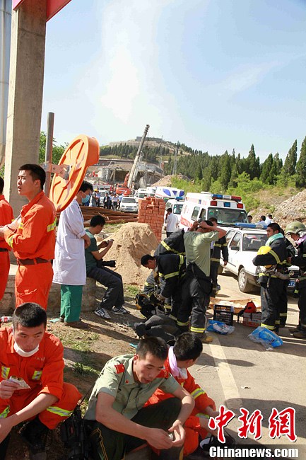 5月20日上午10点45分,山东省济南章丘市保利民爆济南科技有限公司内的震源药柱生产车间发生爆炸,造成12人死亡,19人受伤,其中2人重伤,剩余11人失踪。图为救援人员正在轮流休息,补充体力。中新社发 梁犇 摄