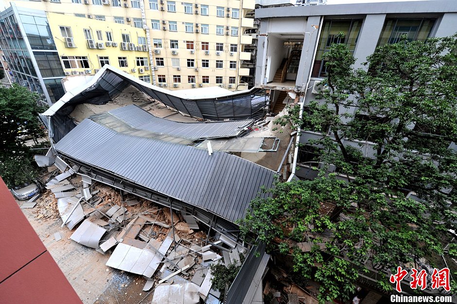 福州闹市区酒店附楼坍塌 伤亡暂不明