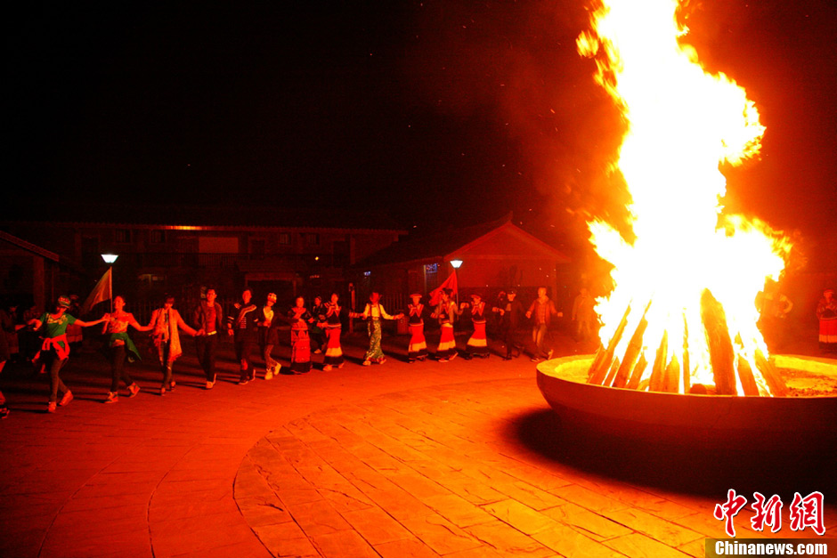 图为格萨拉景区彝族同胞的篝火盛宴。高寒 摄