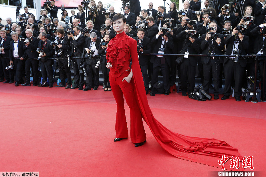 李宇春猩红雪纺气场足 美丽“春风”席卷戛纳