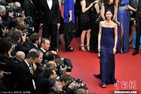 当地时间5月22日,第66届戛纳电影节,电影《失去一切》(All Is Lost)首映礼。中国超模刘雯一身低胸长裙亮相惊艳全场。图片来源:CFP视觉中国