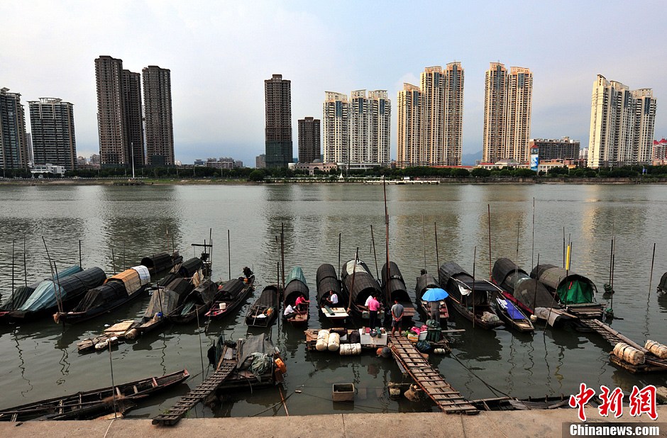 2013年5月23日,在福州闽江两岸的水上,有一个族群叫福州疍民,也被称为福州的“吉普赛人”。他们源于古代的百越长期以来浮舟泛居于船中,一家人吃、住都在船上,以船谋生,过着漂泊的水上生活。民国时期,政府立法废除对疍民的歧视政策。自上世纪50年代起,政府陆续安排福州疍民上岸,到了上世纪90年代,他们中的绝大部分已定居陆上。随着时代的变迁,福州闽江两岸原有的码头如今建起了一座座高楼,这些疍民也过起了城市居民的生活。在福州闽江大桥菖蒲水域,如今仍然可以看到许多小渔船,他们是这些福州疍民的后代,由于他们从小就生活在船虽然现在住在岸上了,但他们仍然喜欢船上的生活,每天开着小船游走在江中打鱼。随着他们年龄的增长,后代的陆上生活,他们也许将成为闽江岸的最后的渔民和疍民。张斌 摄