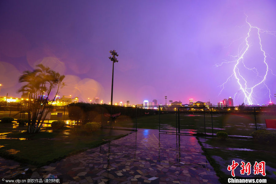 2013年05月25日傍晚,海口下起暴雨,并伴有闪电,闪电持续了一个多小时。图片来源:CFP视觉中国