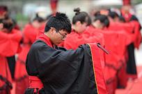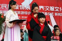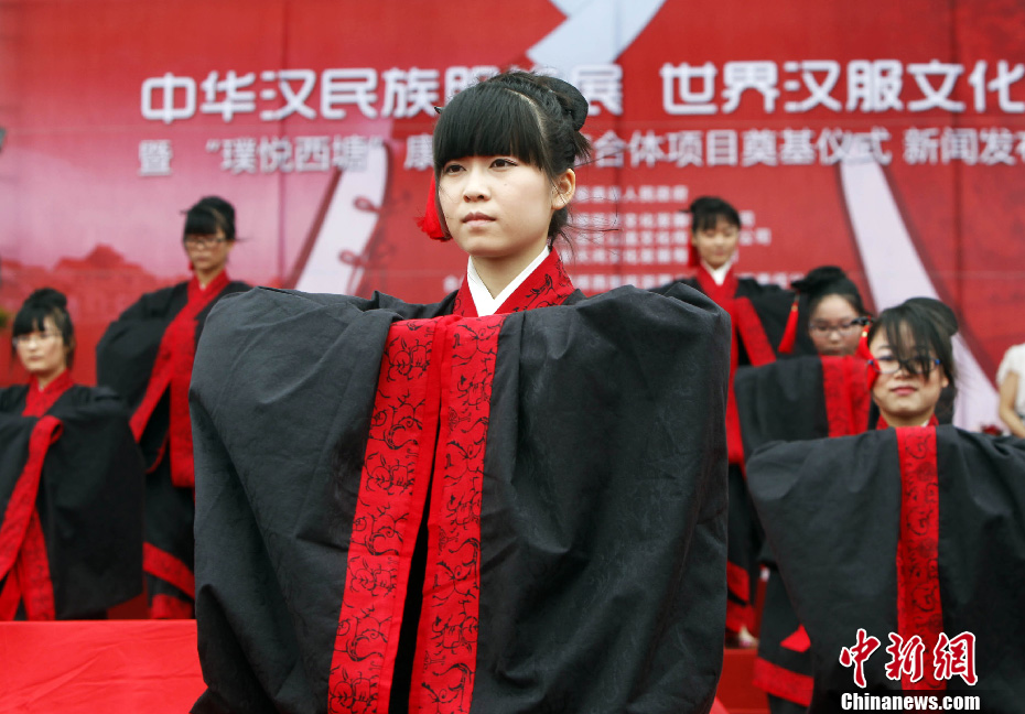 5月26日,汉服文化周在江南著名古镇西塘启动。当日的活动中举行了集体“汉服成年礼”。经过郑重的盥洗仪式后,高中生代表们身着汉服,共同举行“男子加冠,女子加笄”的传统仪式,正式宣誓成年。汤彦俊 摄