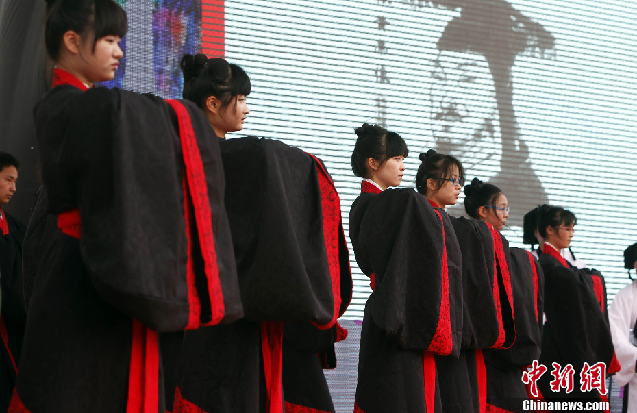 5月26日,汉服文化周在江南著名古镇西塘启动。当日的活动中举行了集体“汉服成年礼”。经过郑重的盥洗仪式后,高中生代表们身着汉服,共同举行“男子加冠,女子加笄”的传统仪式,正式宣誓成年。汤彦俊 摄