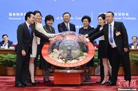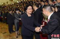 5月28日上午,由国务院侨办和中国海外交流协会举办的“第九届世界华裔杰出青年华夏行”在北京人民大会堂开幕,74个国家地区500名华裔青年俊彦齐聚。国务委员杨洁篪、全国政协副主席李海峰接见全体代表并出席开幕式。中新社发 刘震 摄