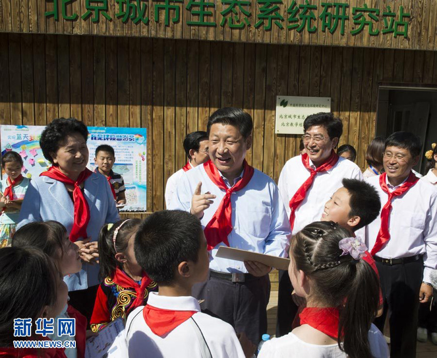 5月29日,中共中央总书记、国家主席、中央军委主席习近平在北京市少年宫参加“快乐童年放飞希望”主题队日活动。这是习近平在和孩子们谈对环保的认识和理解。新华社记者 李学仁 摄 图片来源:新华网