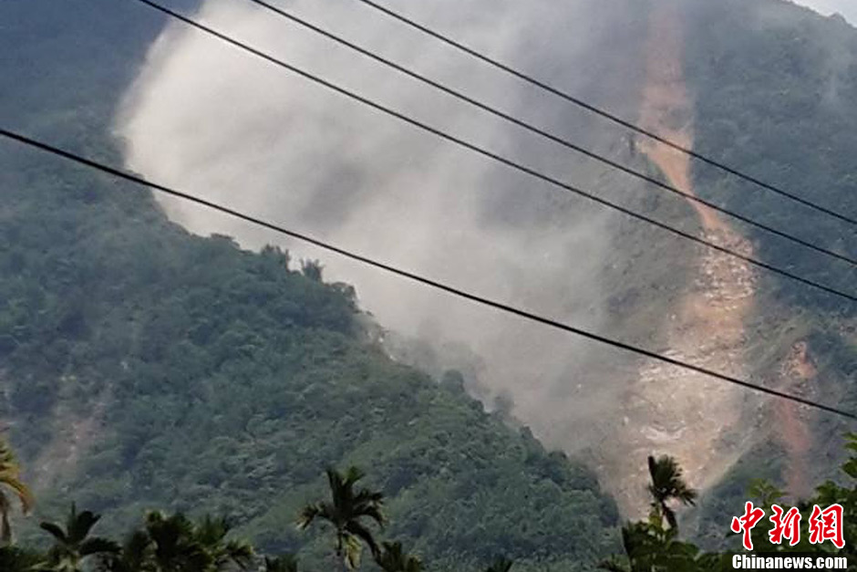 6月2日,台湾南投县附近发生里氏6.7级地震,南投县水里乡上安村附近山体由于地震原因垮塌。中新社发 Junhong Liu 摄