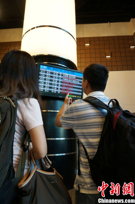 6月2日下午1时43分,台湾南投县仁爱乡发生里氏6.3级地震,是今年以来台湾最大级别地震,高铁一度停驶,大面积延误。图为高雄左营高铁站内指示牌均显示红色字体,标示出列车延误或取消的状态。路梅 摄