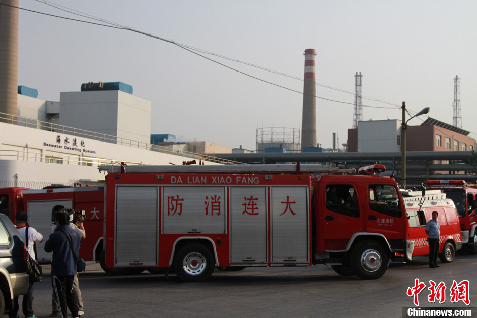 大连石化火灾致2伤2失踪 消防车聚集施救