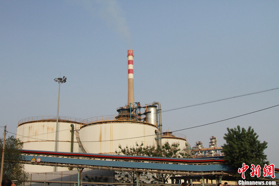 6月2日14时30分许,中石油大连石化公司一联合车间939号罐着火。经消防官兵扑救,截止到16时火已扑灭。火灾造成2人受伤,2人失踪。图为大连石化公司现场。中新社发 宫旭 摄