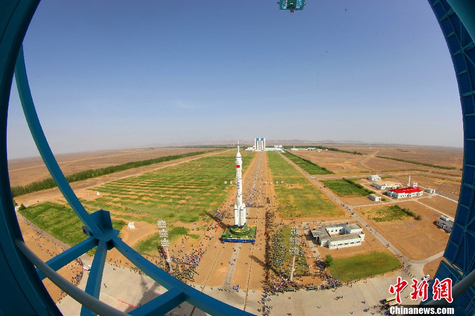 中国载人航天工程新闻发言人6月3日对外宣布,中国将于6月中旬择机发射神舟十号飞船,3名航天员将再次访问天宫一号。当天上午,承载着组合体的活动发射平台缓缓驶出载人航天发射场垂直总装测试厂房,安全转运至发射塔架。中新社发 黄增光 摄 图片来源:CNSPHOTO