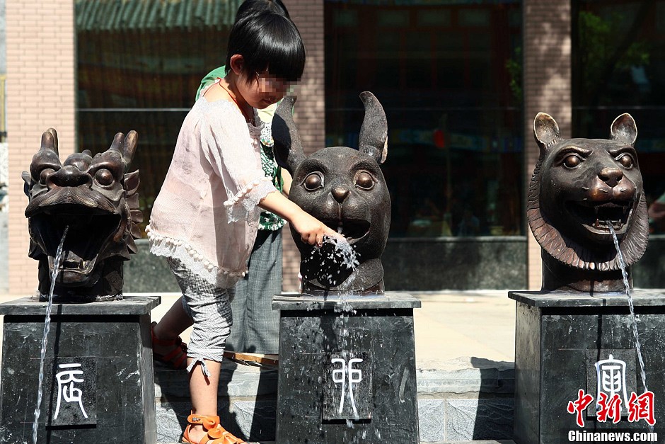 仿制“十二兽首”太原展出 意外成市民嬉水池