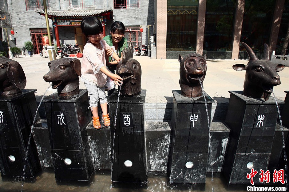 仿制“十二兽首”太原展出 意外成市民嬉水池