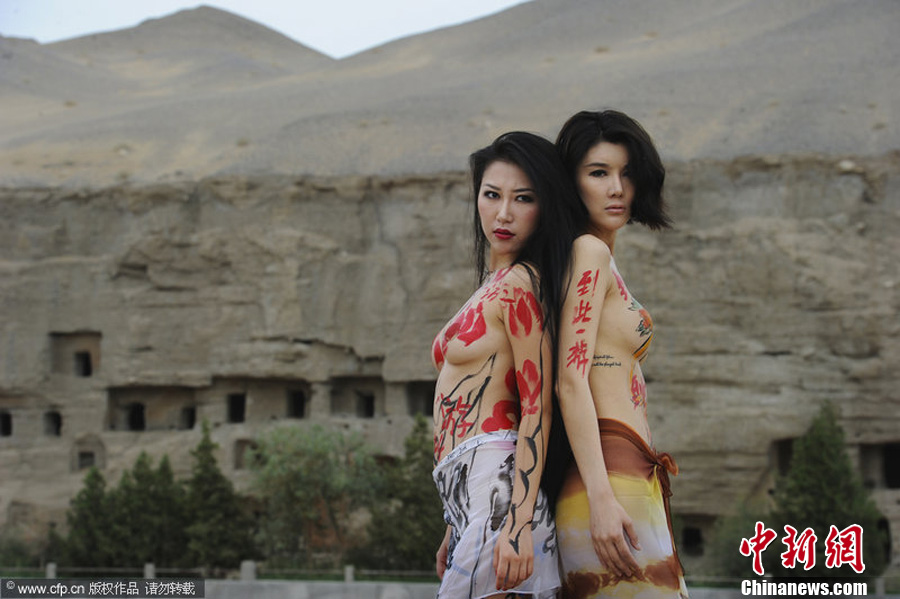 志愿者拍沙裸写真呼吁保护莫高窟