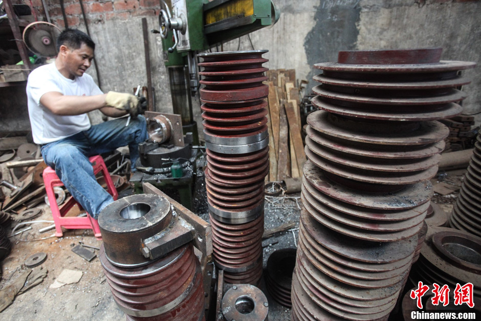 图为5月16日,上林县明亮镇,一名工人在加工淘金设备(资料图)。小黑 摄