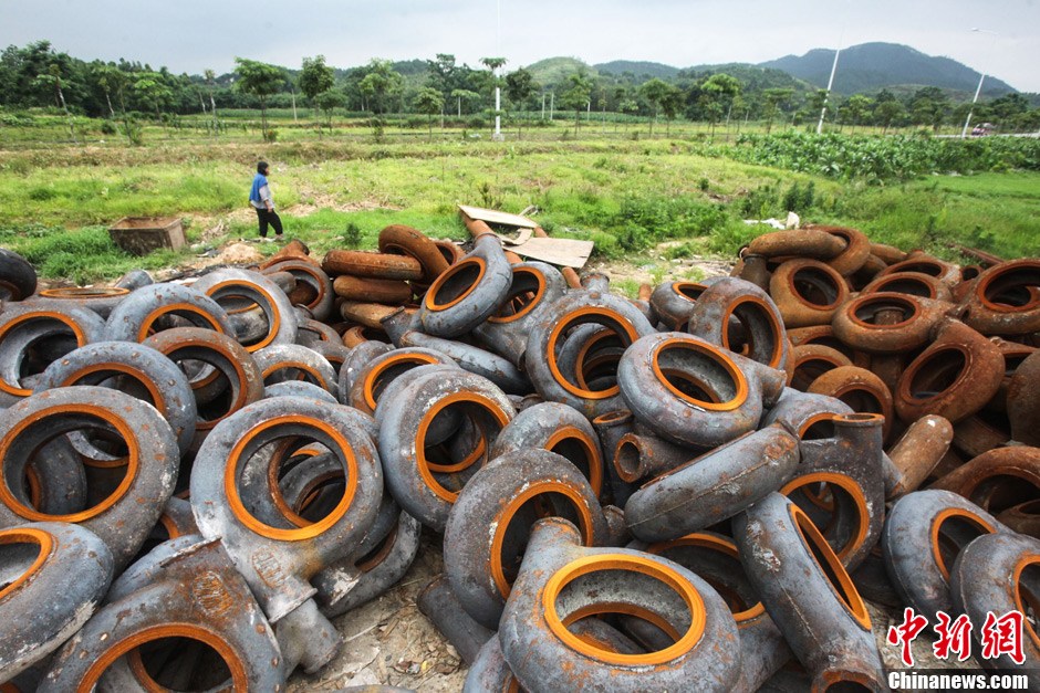 图为上林县明亮镇摆在地里的淘金设备组件(资料图)。小黑 摄